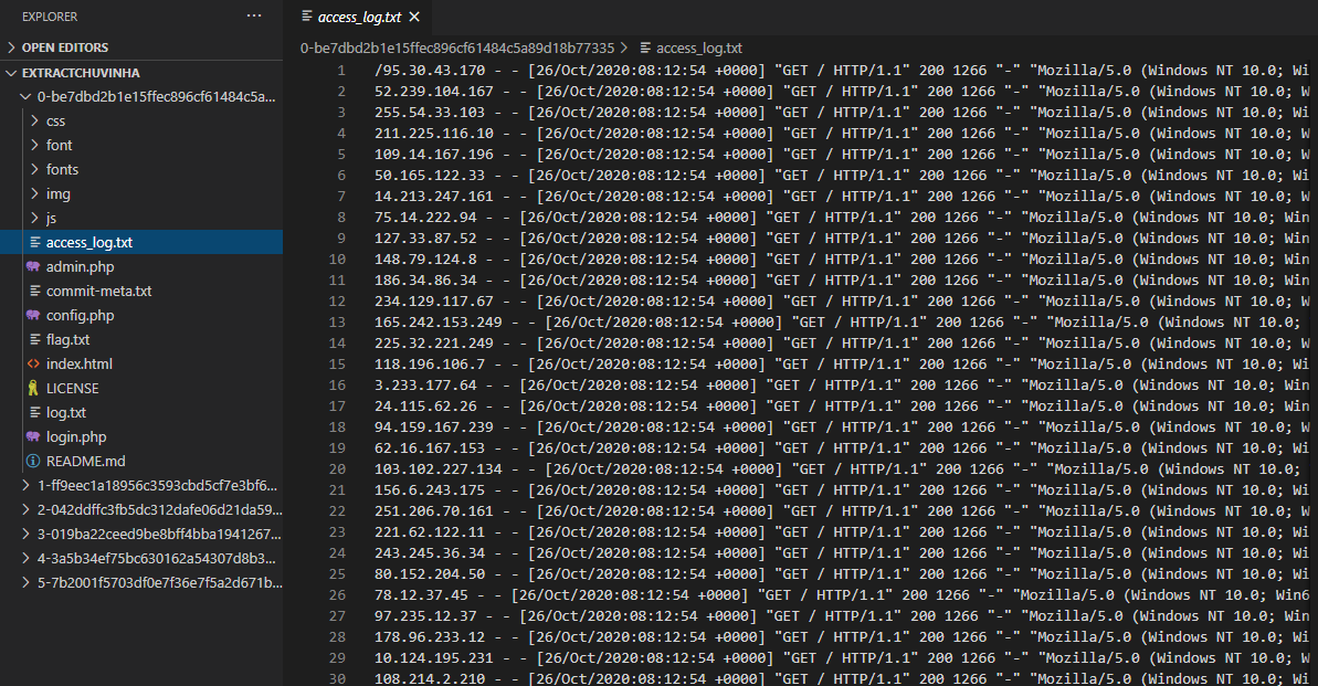 Na primeira versão do site (/0-be7dbd2b1e15ffec896cf61484c5a89d18b77335) temos um arquivo de log do apache para ler.